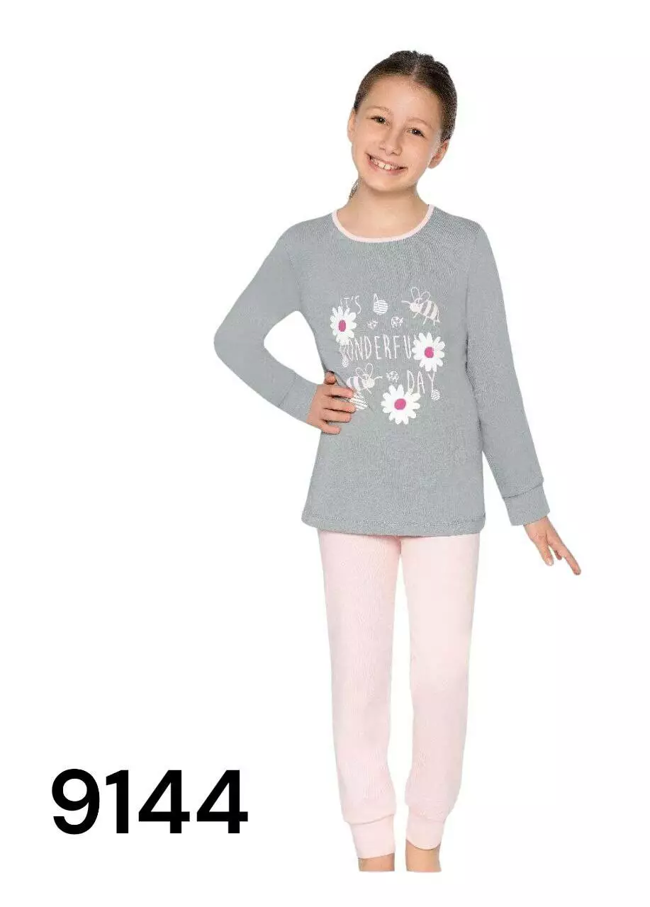 Стильна та зручна піжама для дівчаток. Комплект складається зі зручного лонгсліву на довгий рукав та лосин на еластичній резинці.