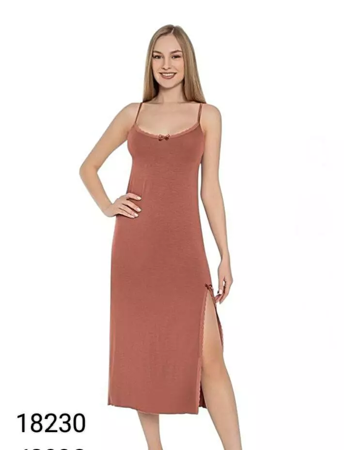 Елегантна подовжена нічна сорочка. Модель виконана з приємної до тіла тканини,яка дарує комфорт під час сну та відпочинку.Тонкі брителі додають жіночності та витонченості.