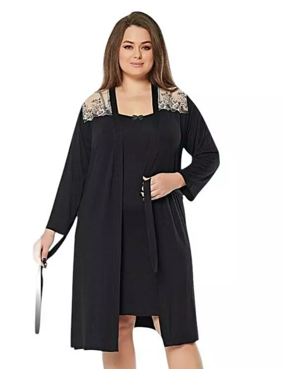 Елегантний жіночий комплект для дому та сну,що складається з нічної сорочки на тонких бретелях та легкого халату. Виконаний з якісної тканини ,нічна сорочка однотонна,халат з мереживними вставками на плечах, що додає образу ніжності і жіночності.
