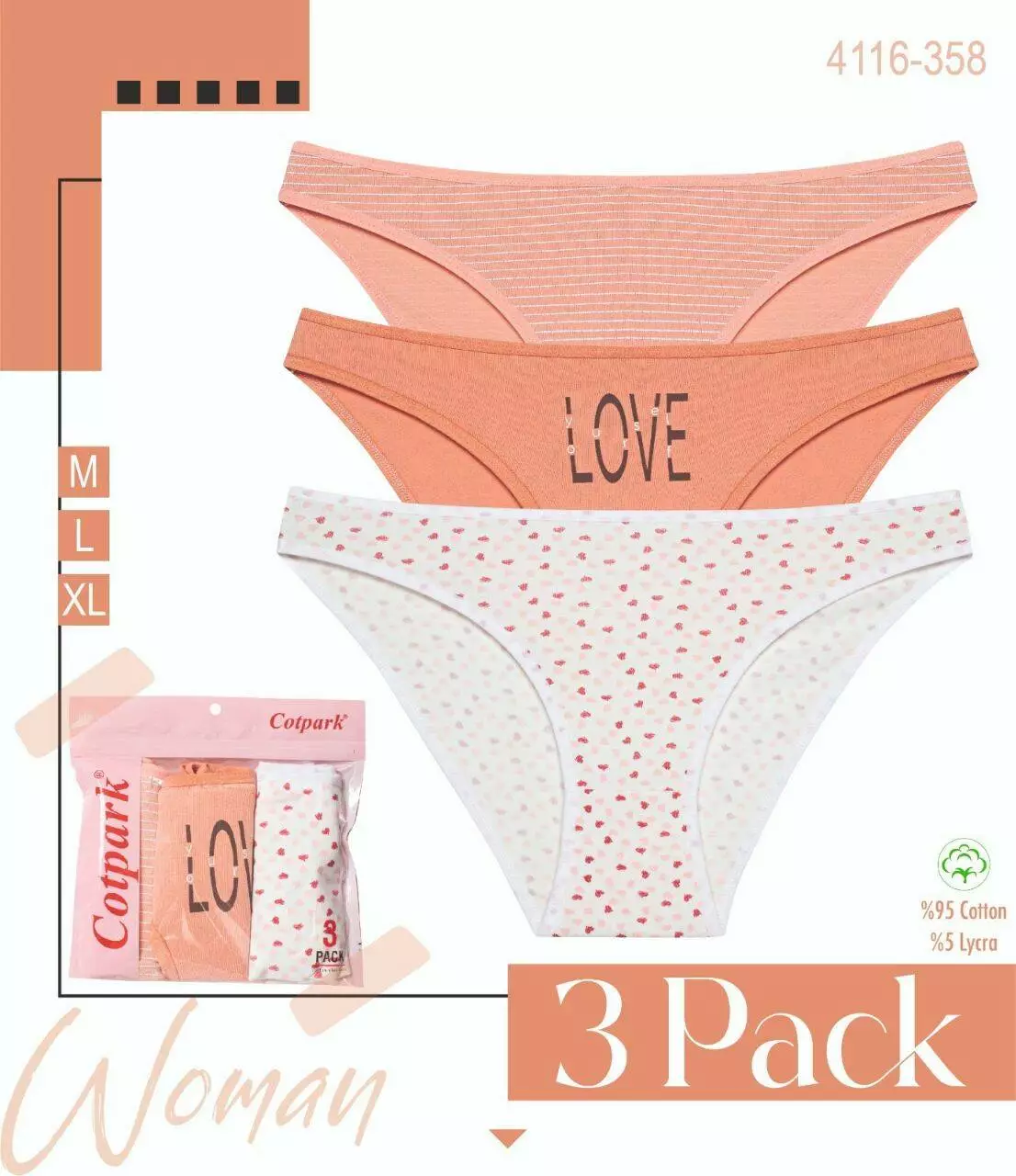 Набір жіночих трусиків - це ідеальне поєднання комфорту,якості та стильного дизайну. У комплект входить 3 моделі. Виготовленні з якісної тканини,еластичні та приємні до тіла. Упаковані в брендований пакет. Трусики Cotpark - ідеальний вибір на щодень.