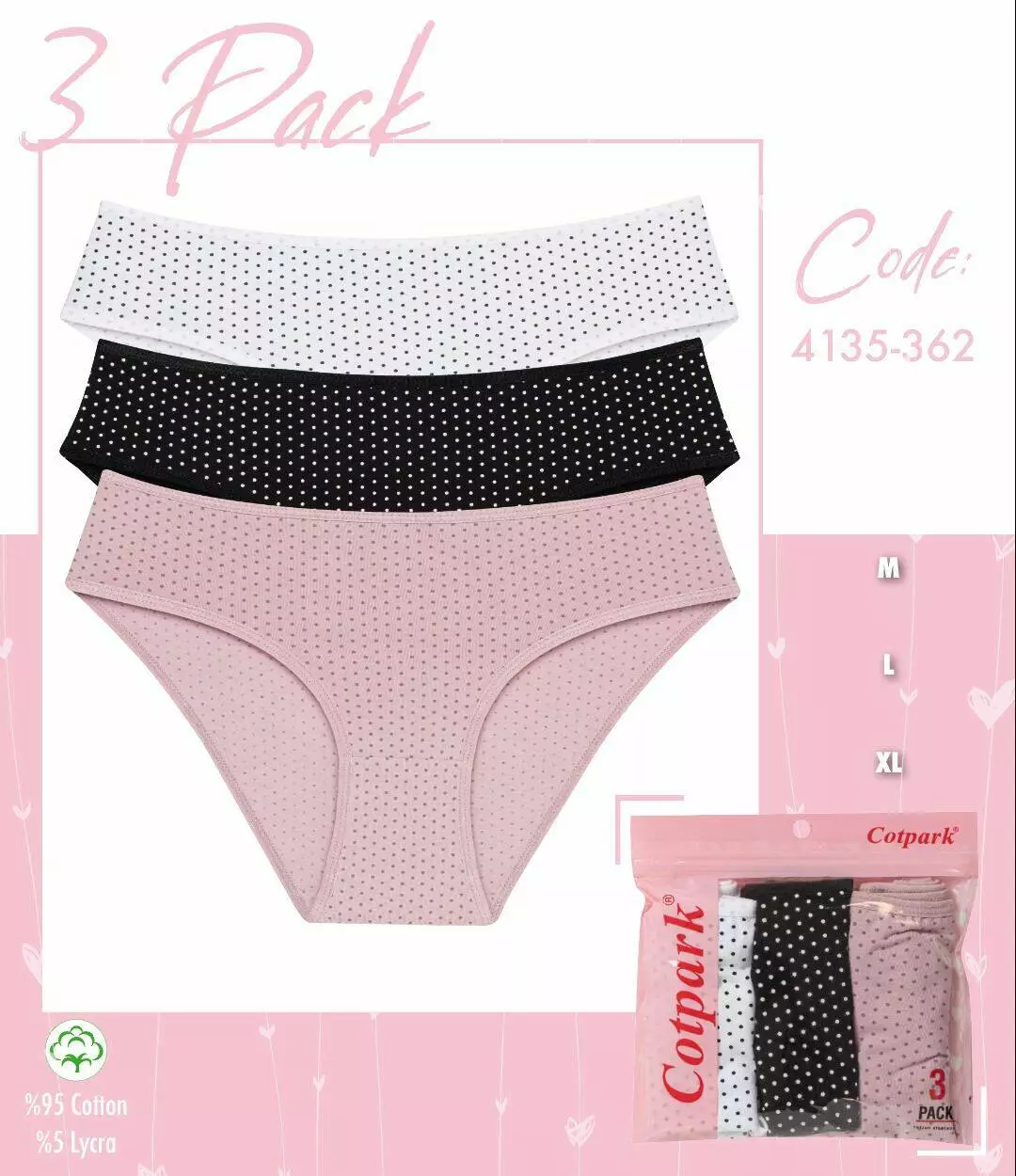 Набір жіночих трусиків Cotpark - це ідеальне поєднання комфорту,якості та стильного дизайну. В комплекті 3 штуки гармонійно поєднаних між собою.