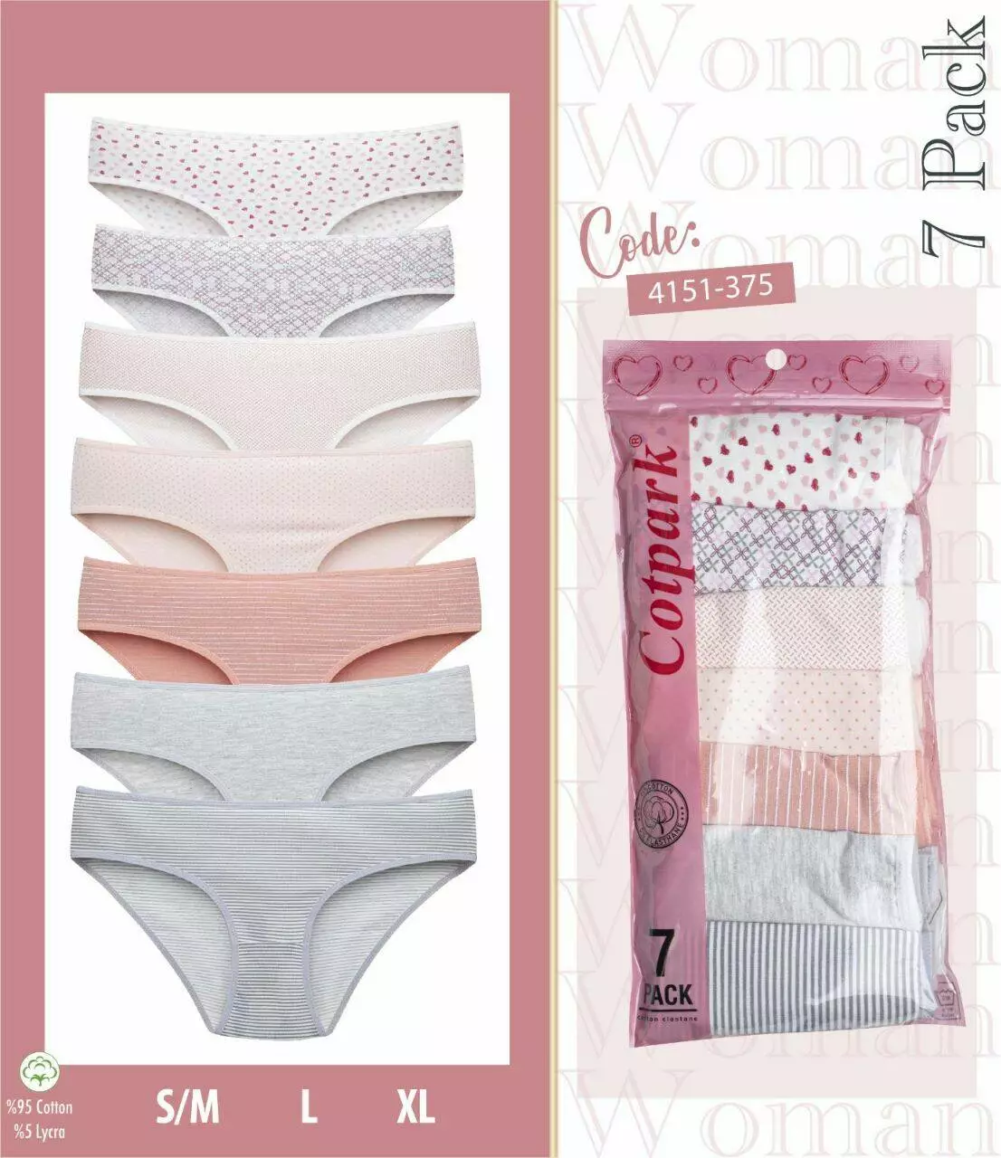 Набір жіночих трусиків - це ідеальне поєднання комфорту,якості та стильного дизайну. У комплект входить 7 штучок. Виготовлені з якісної тканини,еластичні та приємні до тіла. Упаковані в брендований пакет. Трусики Cotpark - ідеальний вибір на щодень.