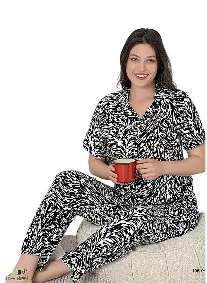 Стильна жіноча піжама з принтом зебра. Комплект складається з класичної сорочки з комірцем на гудзиках та штанів вільного крою на резинці.100% котон