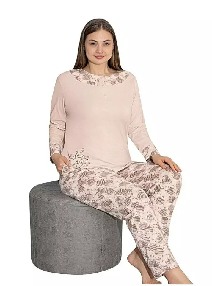 Зручна та приємна на дотик жіноча піжама турецького виробника Cotpark. Виконана з високоякісної тканини. Комплект складається зі зручного лонгсліву оздобленим біля горловини і на манжетах тканиною з принтом ,та штанів прямого крою з принтом.