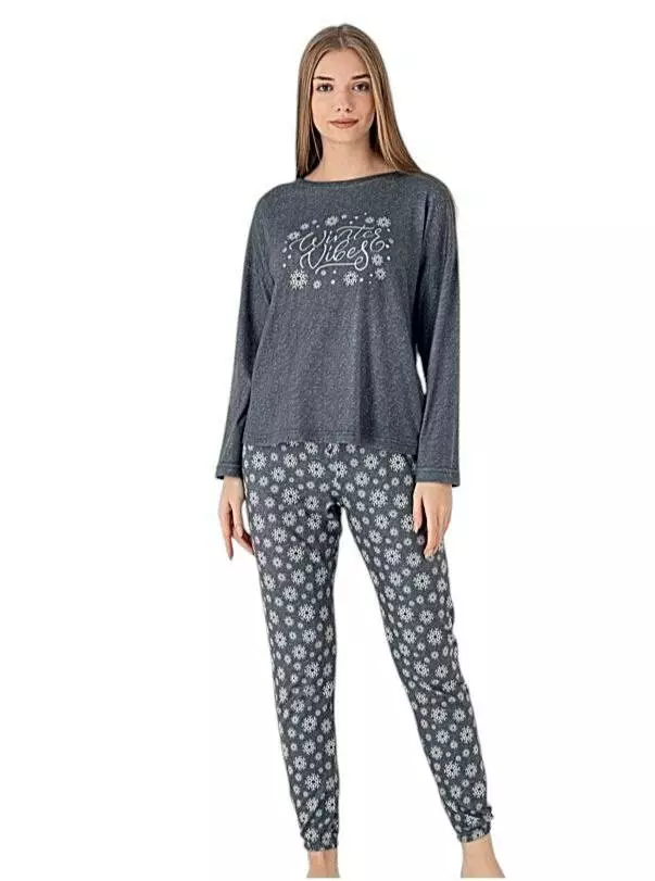 Стильна жіноча піжама бренду Cotpark.Комплект складається зі зручного лонгсліву та завужених штанів зі зручною посадкою. Піжама оздоблена квітковим принтом та стильним надписом.