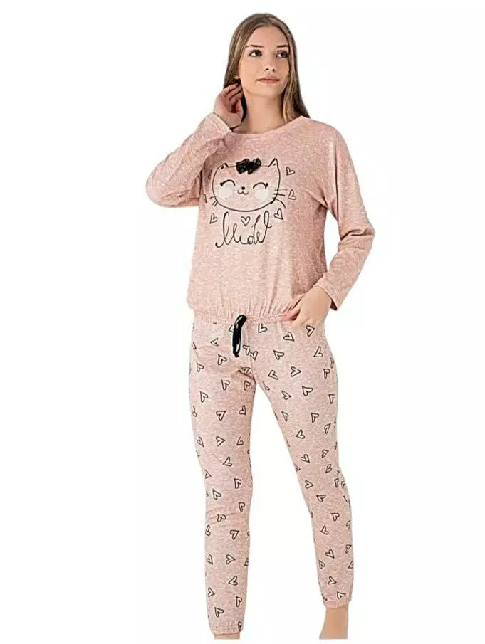 Зручна та стильна піжама бренду Cotpark,твій ідеальний образ для дому та відпочинку. Комплект складається зі зручного лонгсліву на шнурівці знизу та завужених штанів.
